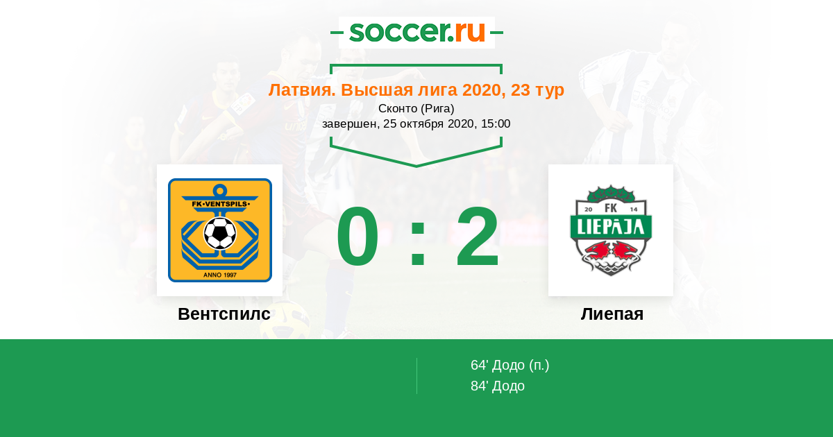 | Вентспилс | 34:29 | 20:13 | 14:16 |