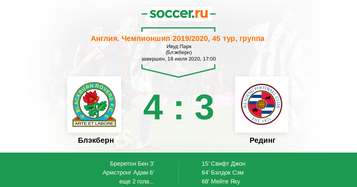 | Блэкберн | Рединг | |