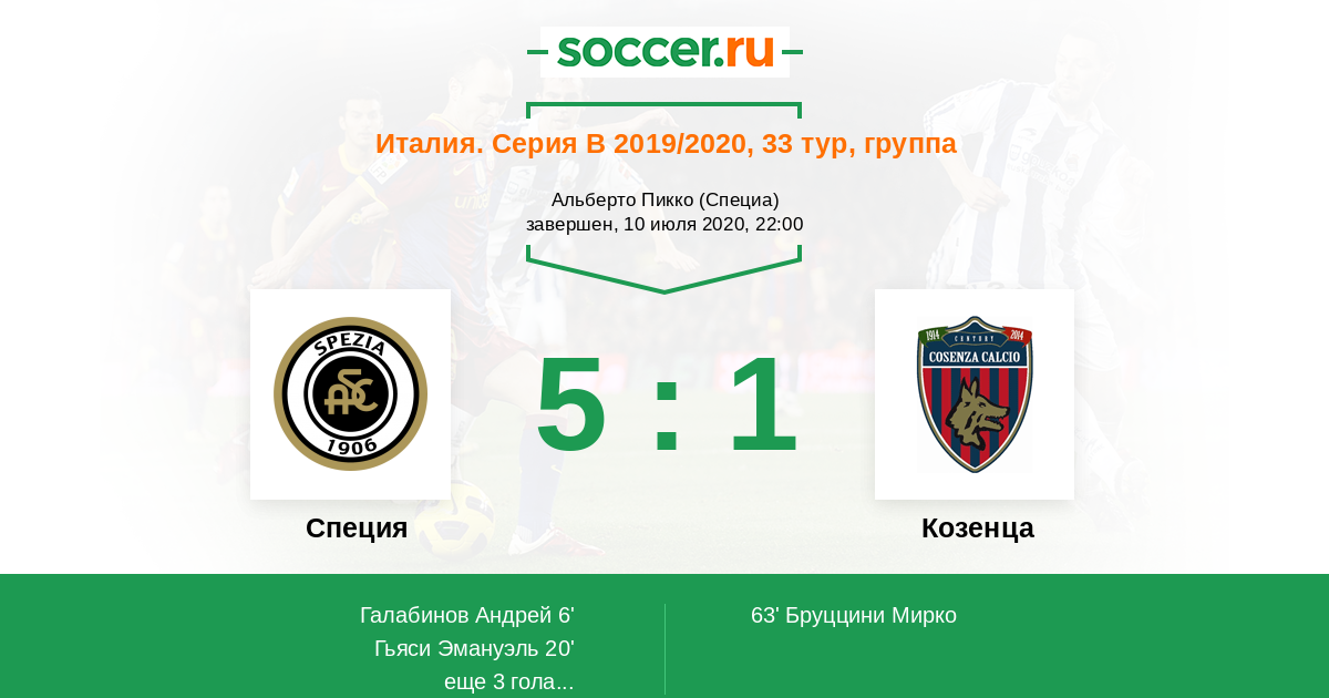 | Козенца | 5:10 | 4:3 | 1:7 |