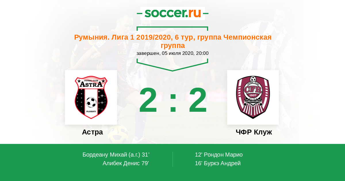 | ЧФР Клуж | 55:29 | 28:13 | 27:16 |
