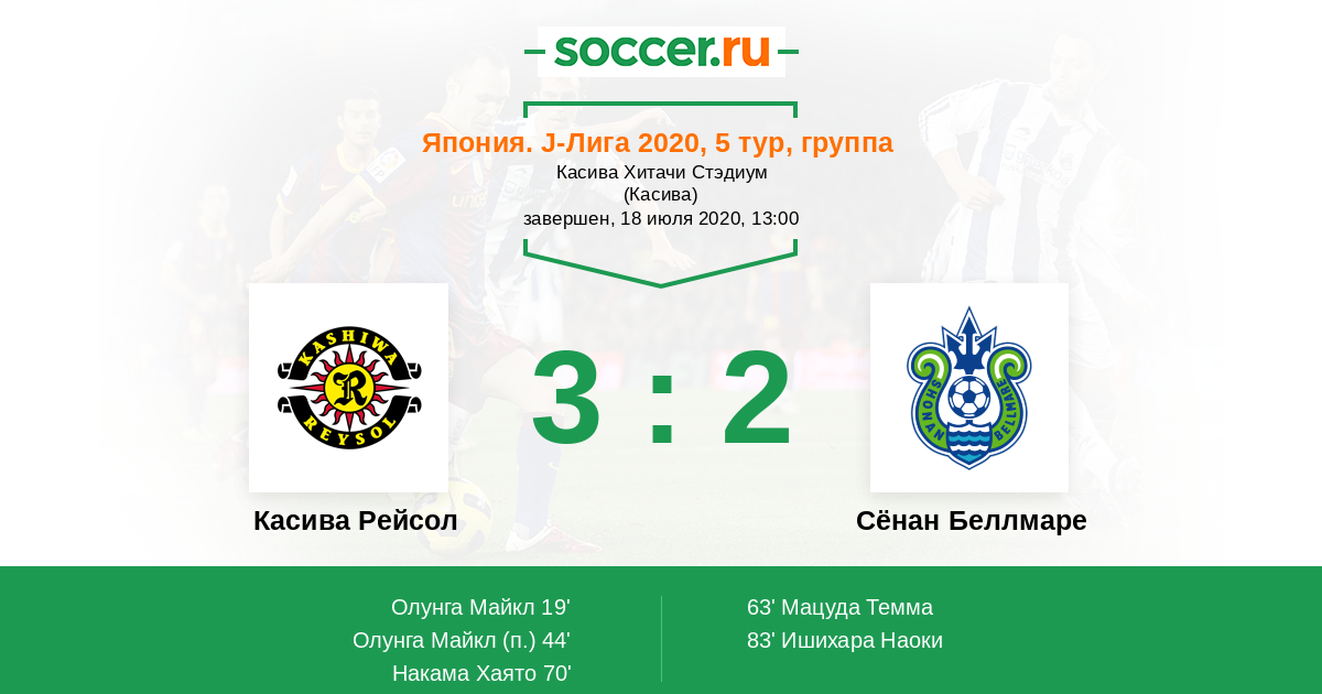 | Касива Рейсол | 44:28 | 22:15 | 22:13 |