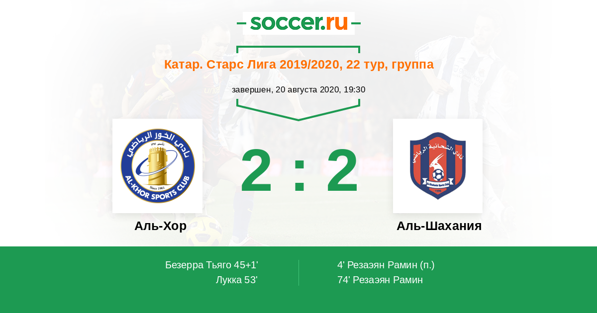 | Аль-Хор | 17:14 | 8:5 | 9:9 |