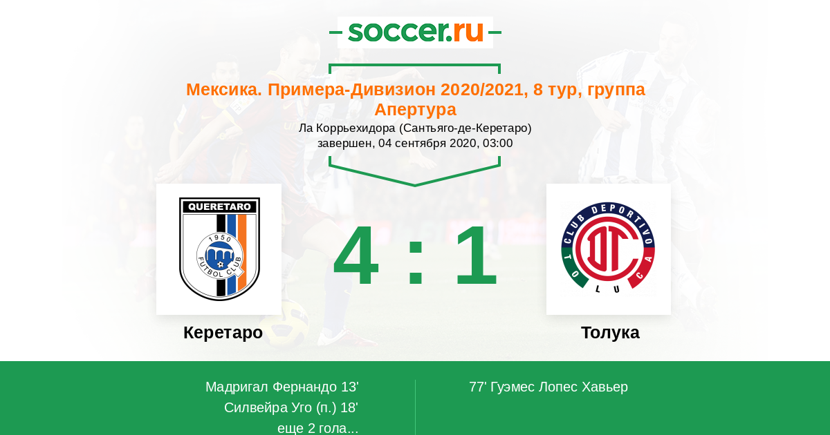 Последние 5 игр дома Керетаро