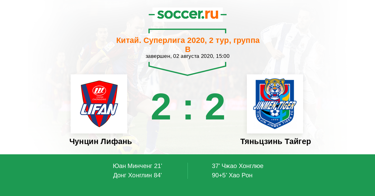 | Чунцин Лифань | Тяньцзинь Тайгер | |