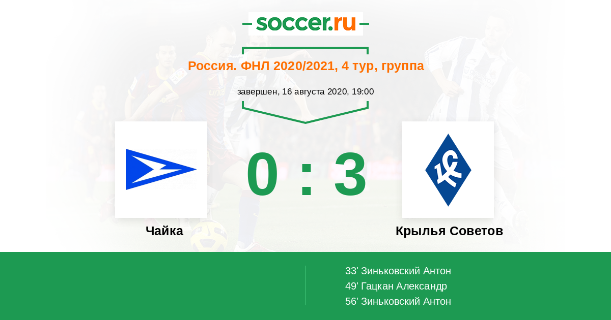| Чайка | 4:7 | 3:4 | 1:3 |