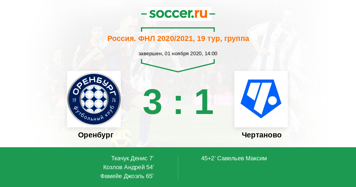 | Оренбург | 5:2 | 0:0 | 5:2 |