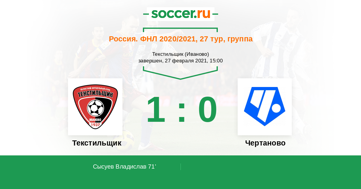 | Текстильщик | 7:6 | 4:1 | 3:5 |
