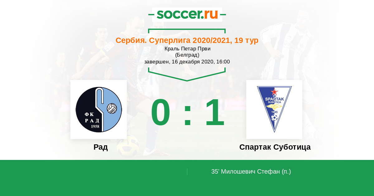 | Рад | Спартак Суботица | |
