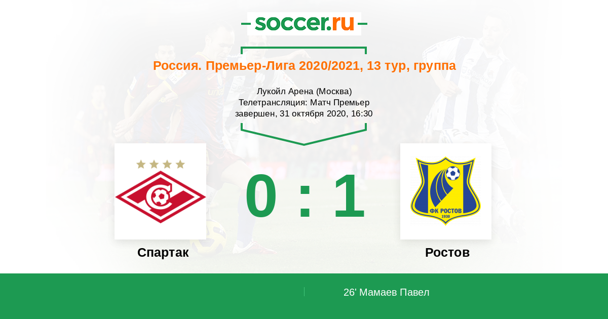Лично от себя. Результат банальный как 5 копеек,выглядит откровенным догом. Повторю-личное мнение. Может, конечно, совпадение. Сложная мысль в целом. Этот бред позволяет заработать на бк,если проанализировать ситуацию и диссонанс коэффициента. Но логики тут, если не верить в преступную составляющую,почти нет. Однако, Ростов с победой. Уважаю этого соперника при любых раскладах.