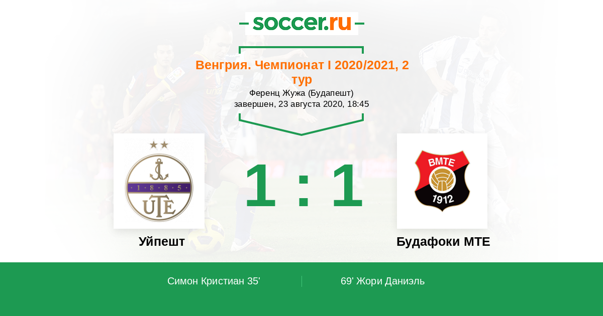 | Уйпешт | 3:1 | 2:0 | 1:1 |