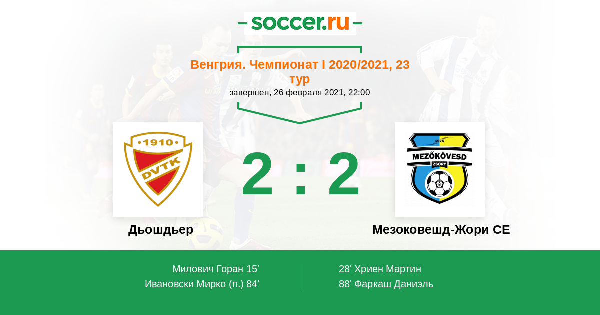 | Дьошдьер | 31:32 | 17:13 | 14:19 |
