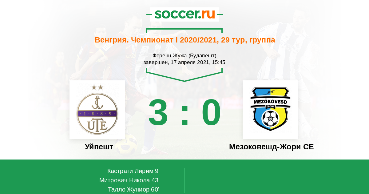 | Уйпешт | Мезоковешд-Жори СЕ | |