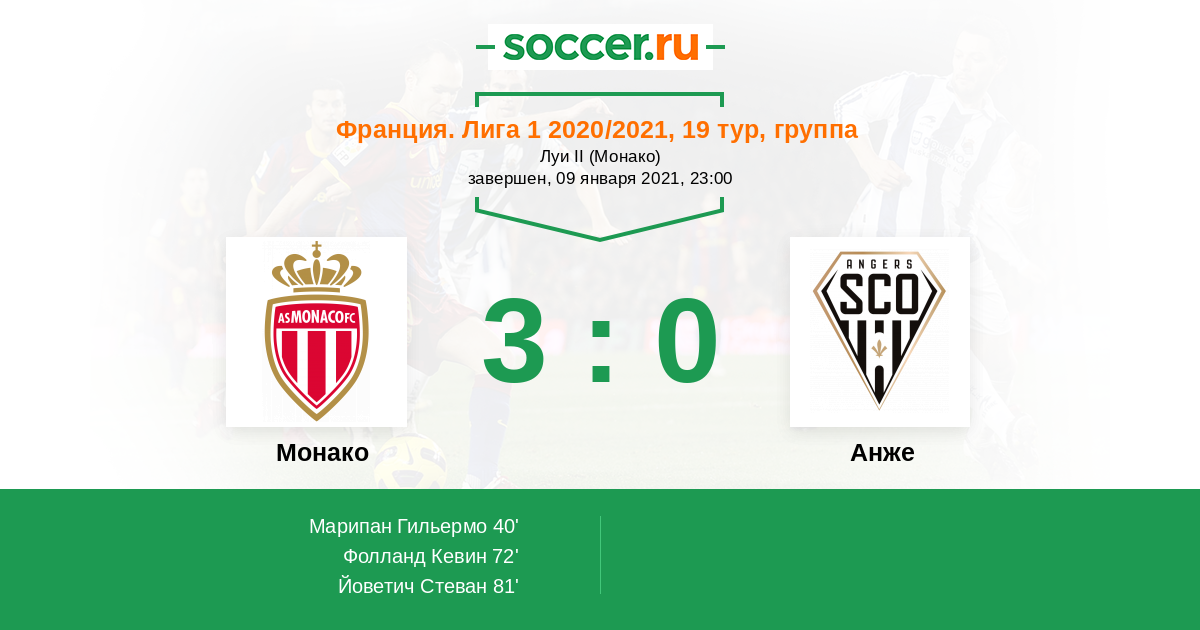 | Монако | Анже | |