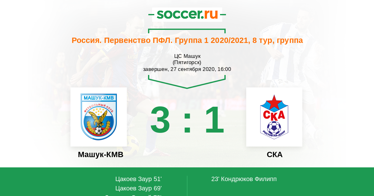 | Россия. Вторая лига. Группа 3 | 2 | 1 | 0 | 1 |