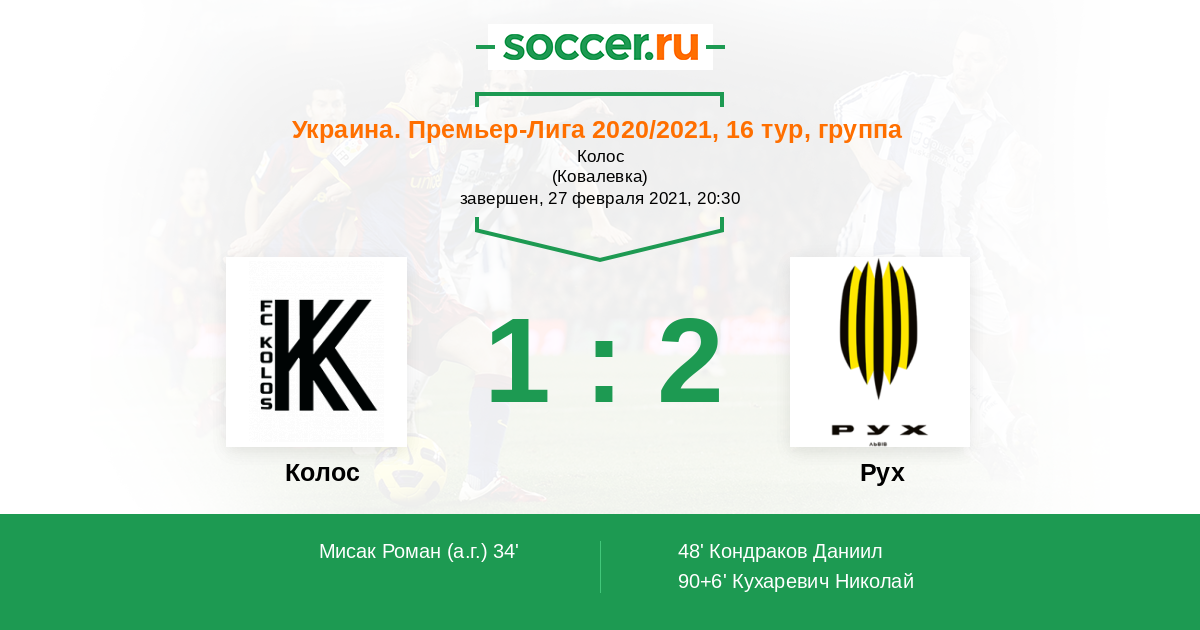 | Колос | 11:10 | 5:7 | 6:3 |