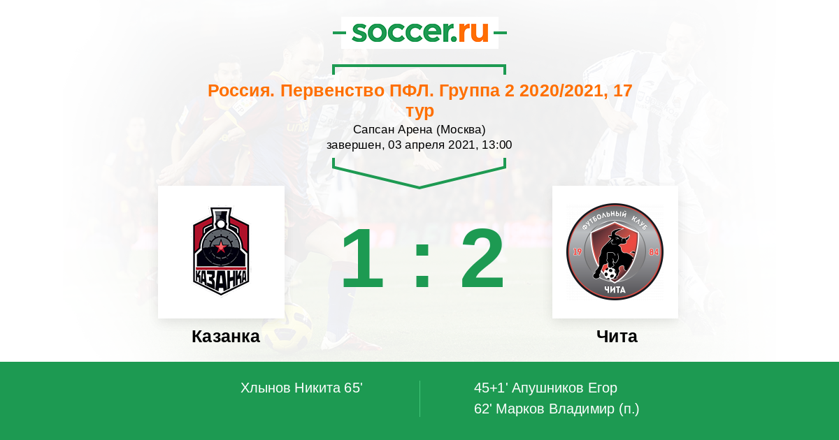 | Казанка | 2:2 | 0:0 | 2:2 |