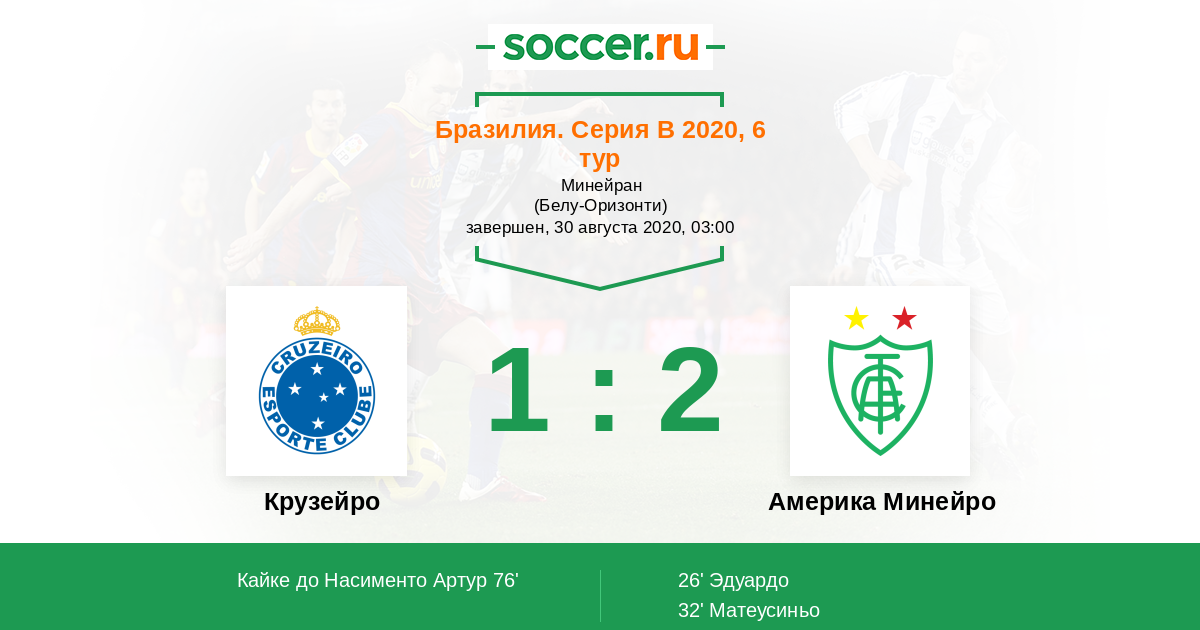 | Америка Минейро | 49:68 | 25:38 | 24:30 |