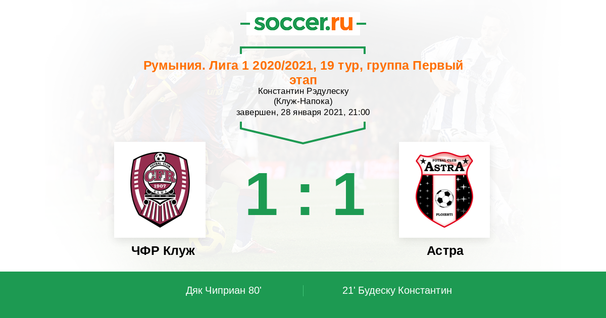 | ЧФР Клуж | Астра | |