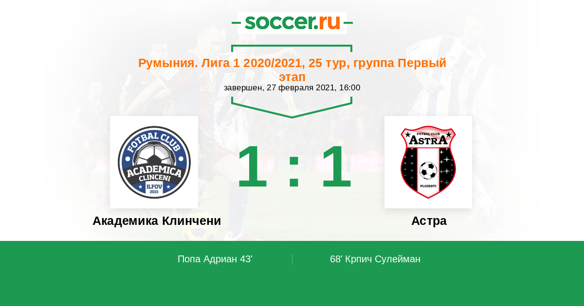 | Румыния. Лига 3 | 2 | 0 | 1 | 1 |