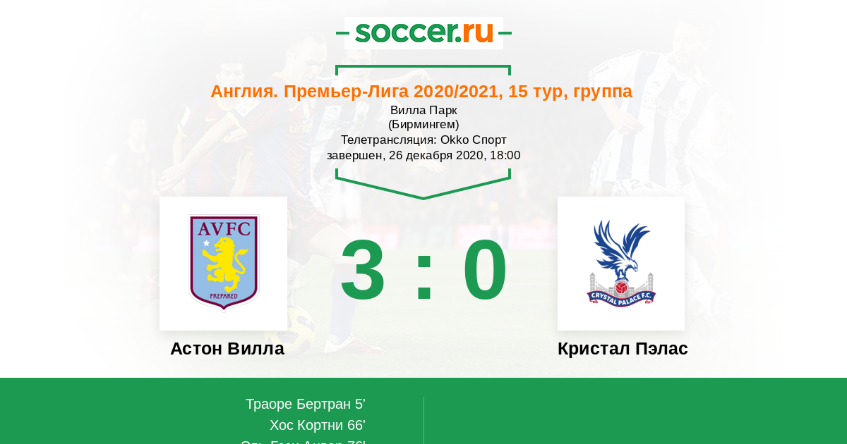 | Астон Вилла | Кристал Пэлас | |
