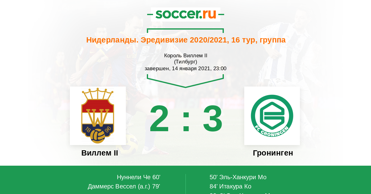| Виллем II | 77:81 | 61:35 | 16:46 |
