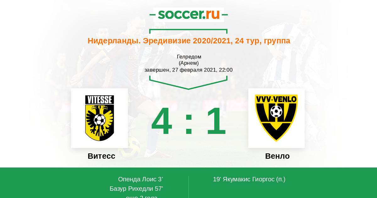 | Витесс | 45:29 | 22:10 | 23:19 |