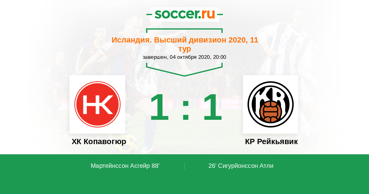 | КР Рейкьявик | 25:22 | 17:12 | 8:10 |
