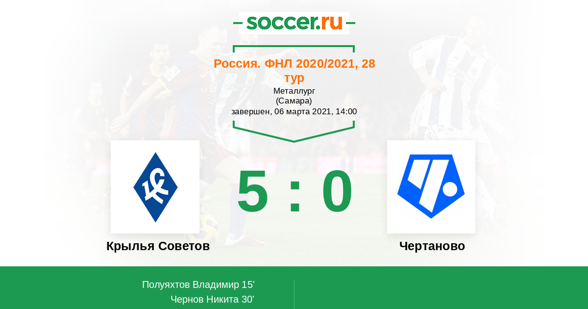 | Крылья Советов | 2:0 | 0:0 | 2:0 |
