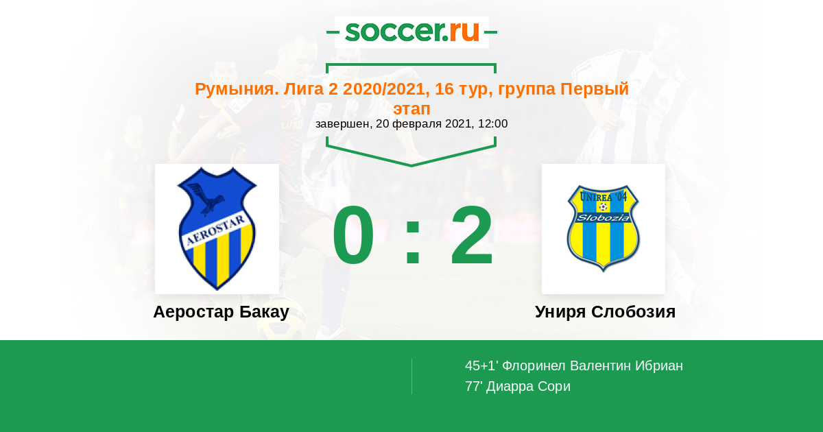 | Униря Слобозия | 2:2 | 0:0 | 2:2 |