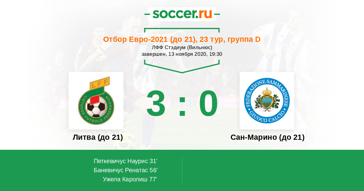 | Литва (до 21) | Сан-Марино (до 21) | |