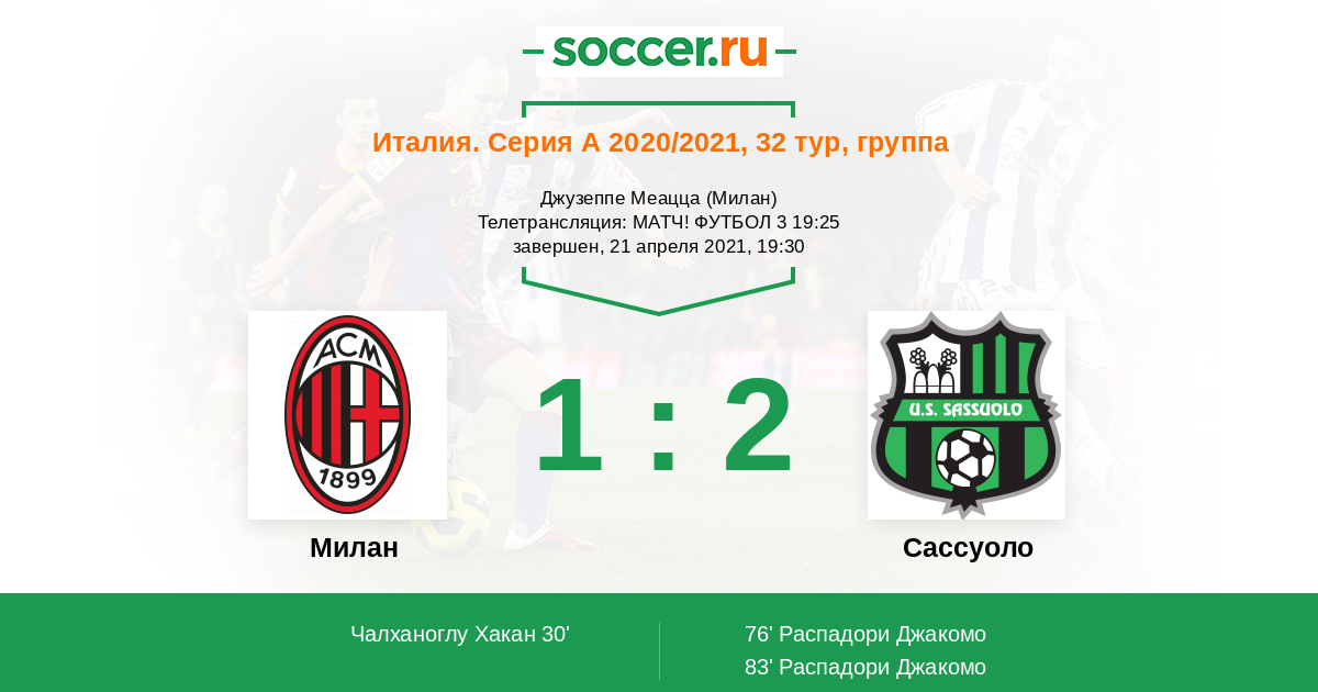 | Сассуоло | 35:49 | 15:24 | 20:25 |