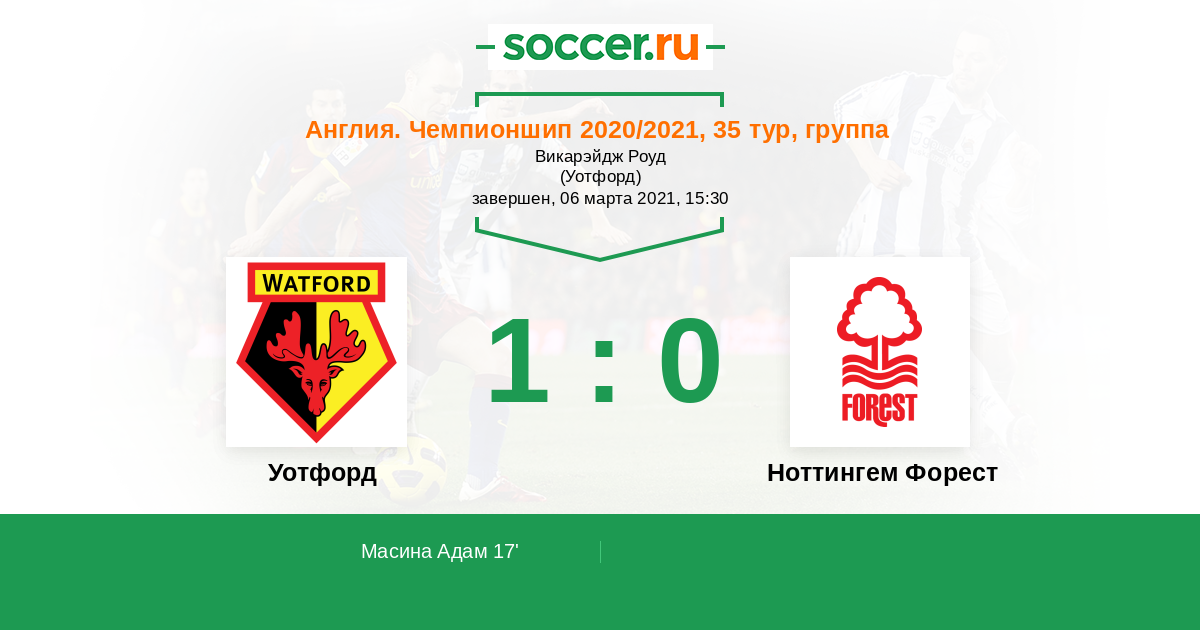 | Уотфорд | Ноттингем Форест | |