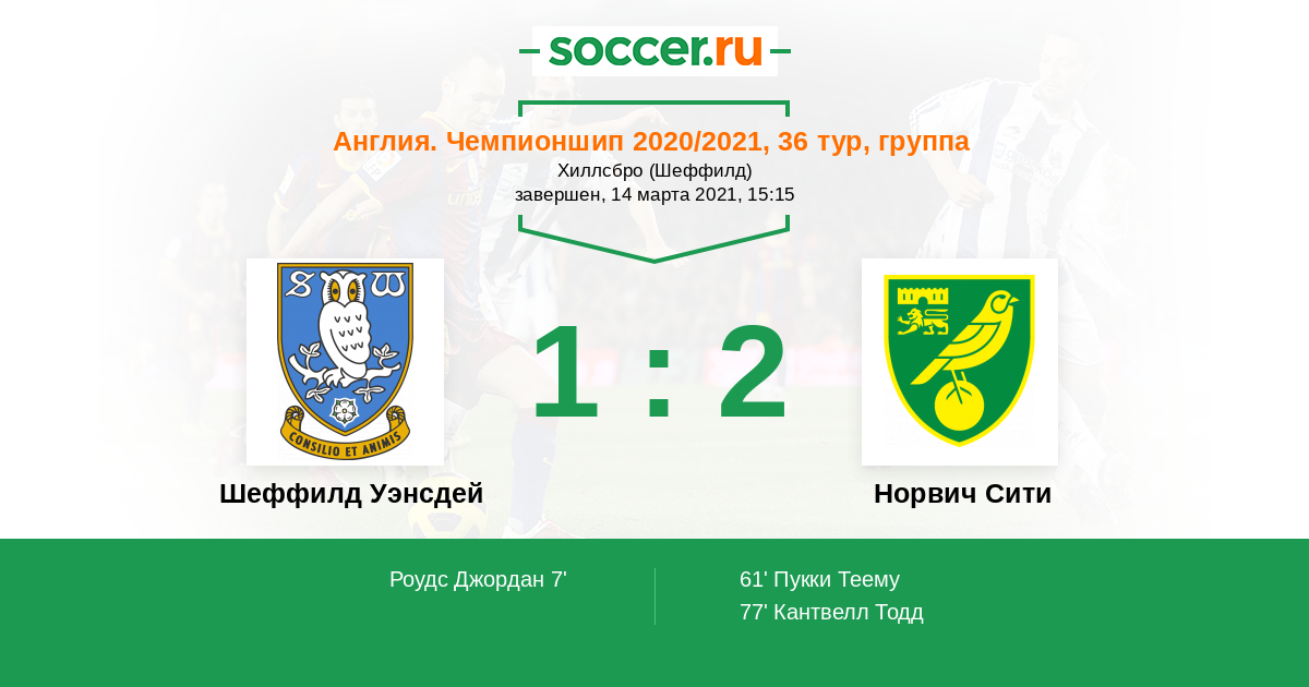 Шеффилд Уэнсдей 1:2 Норвич Сити