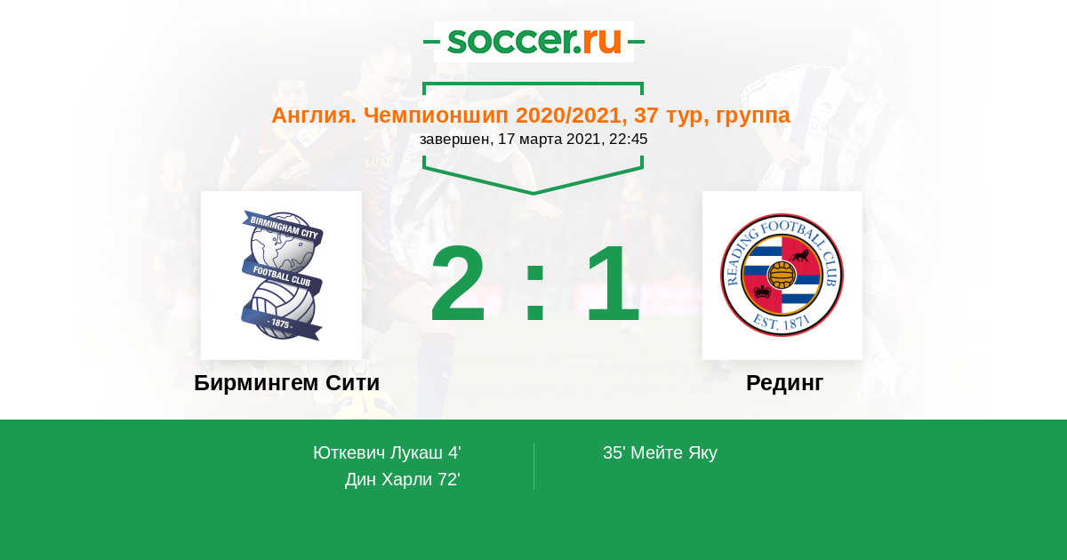 | Бирмингем Сити | Рединг | |