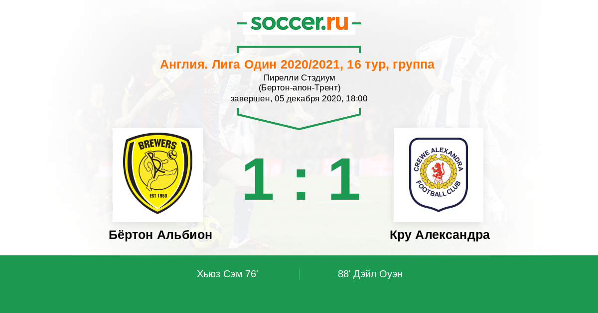 | Бёртон Альбион | Кру Александра | |