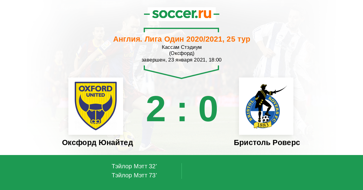 | Оксфорд Юнайтед | Бристоль Роверс | |