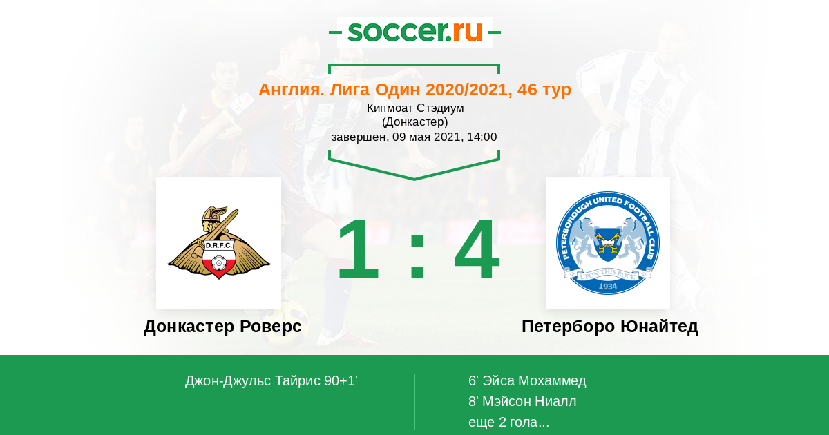 | Донкастер Роверс | Петерборо Юнайтед | |