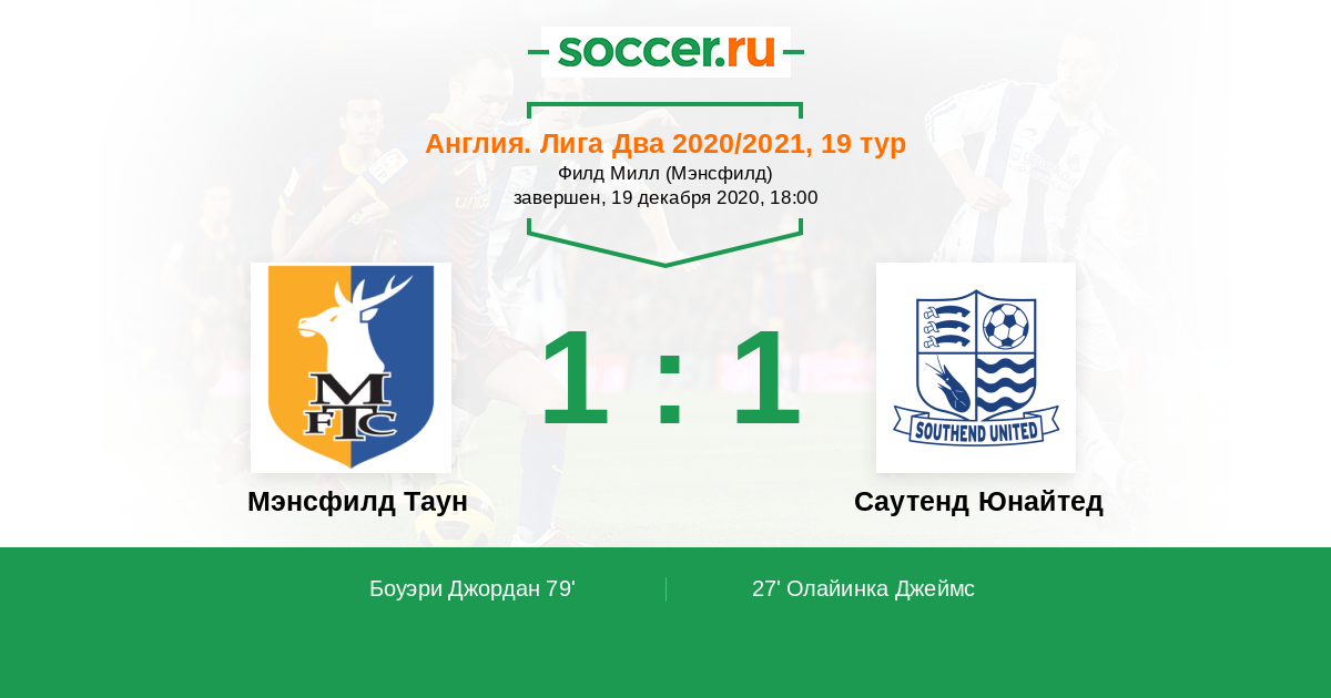 | Мэнсфилд Таун | Саутенд Юнайтед | |