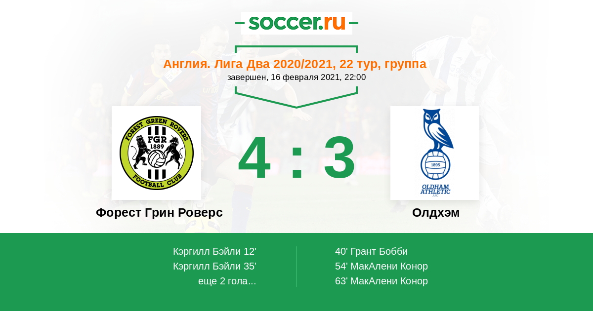| Форест Грин Роверс | Олдхэм | |