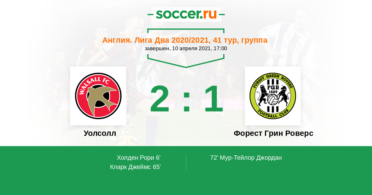 | Уолсолл | Форест Грин Роверс | |