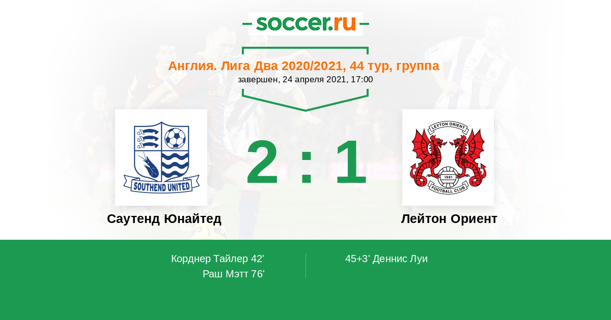 | Лейтон Ориент | 38:38 | 20:19 | 18:19 |