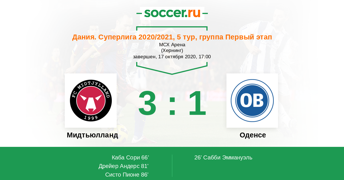 | Мидтьюлланд | 105:73 | 58:31 | 47:42 |
