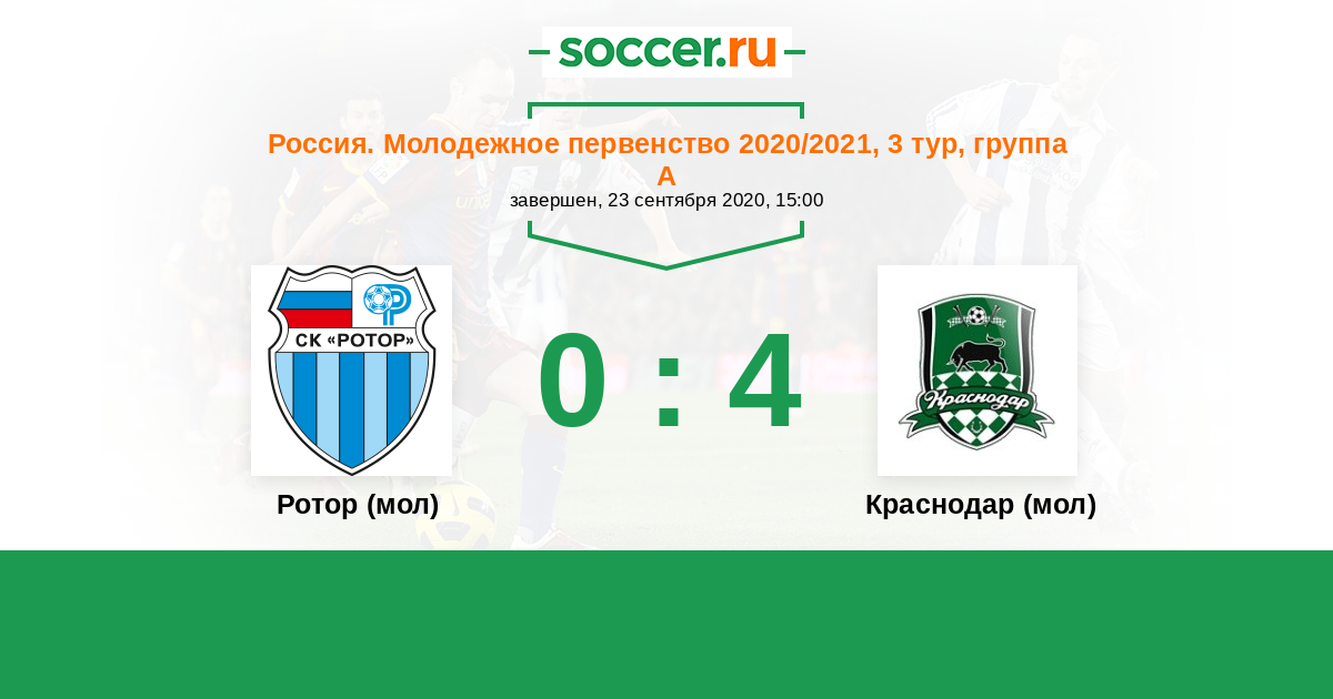 | Краснодар (мол) | 2:0 | 2:0 | 0:0 |