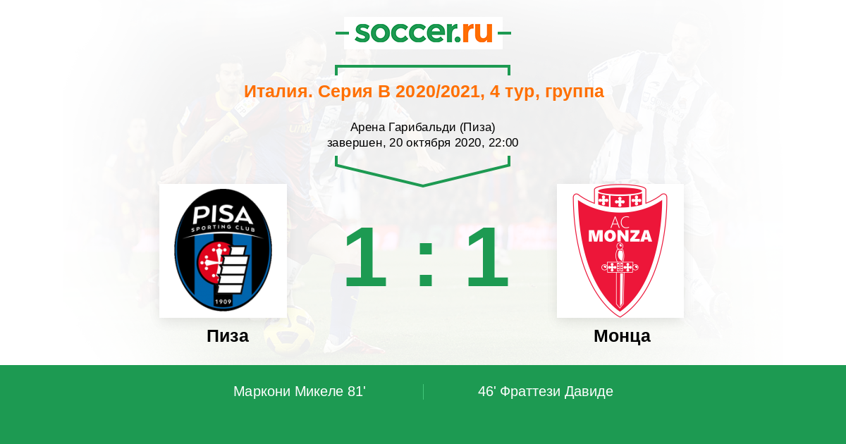 | Пиза | 21:13 | 12:9 | 9:4 |