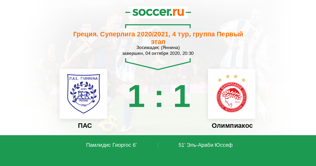 | ПАС | Олимпиакос | |