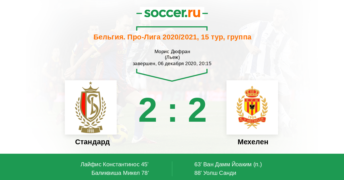 | Стандард | Мехелен | |
