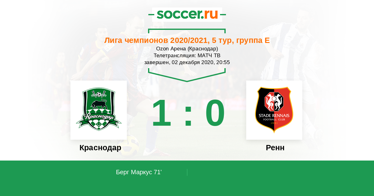 | Краснодар | 1:1 | 0:0 | 1:1 |