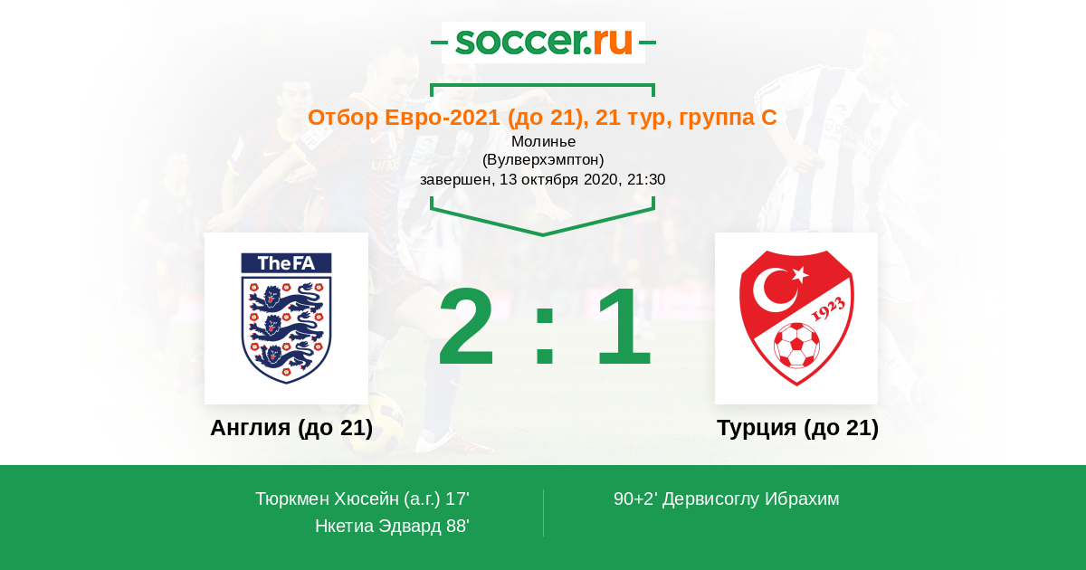 | Англия (до 21) | 3:2 | 0:0 | 3:2 |