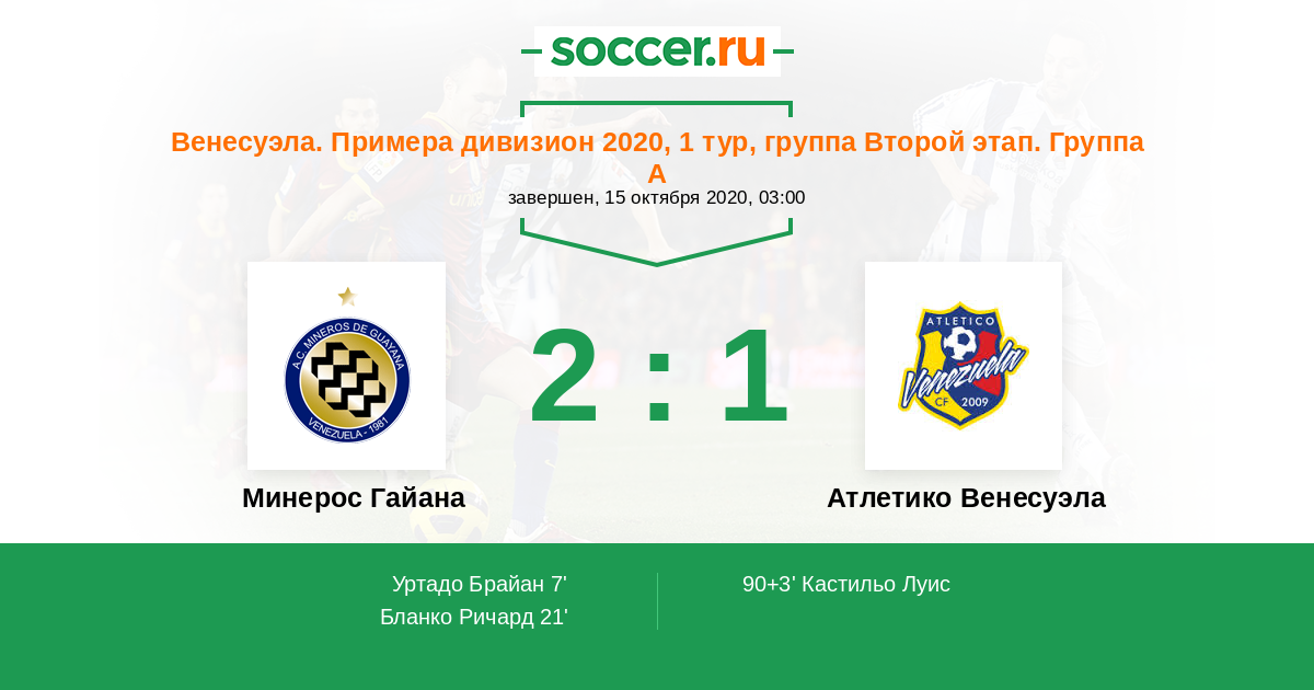 | Минерос Гайана | Атлетико Венесуэла | |
