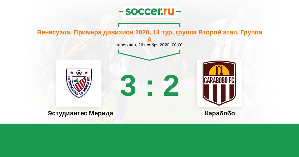 | Карабобо | 75:51 | 40:20 | 35:31 |